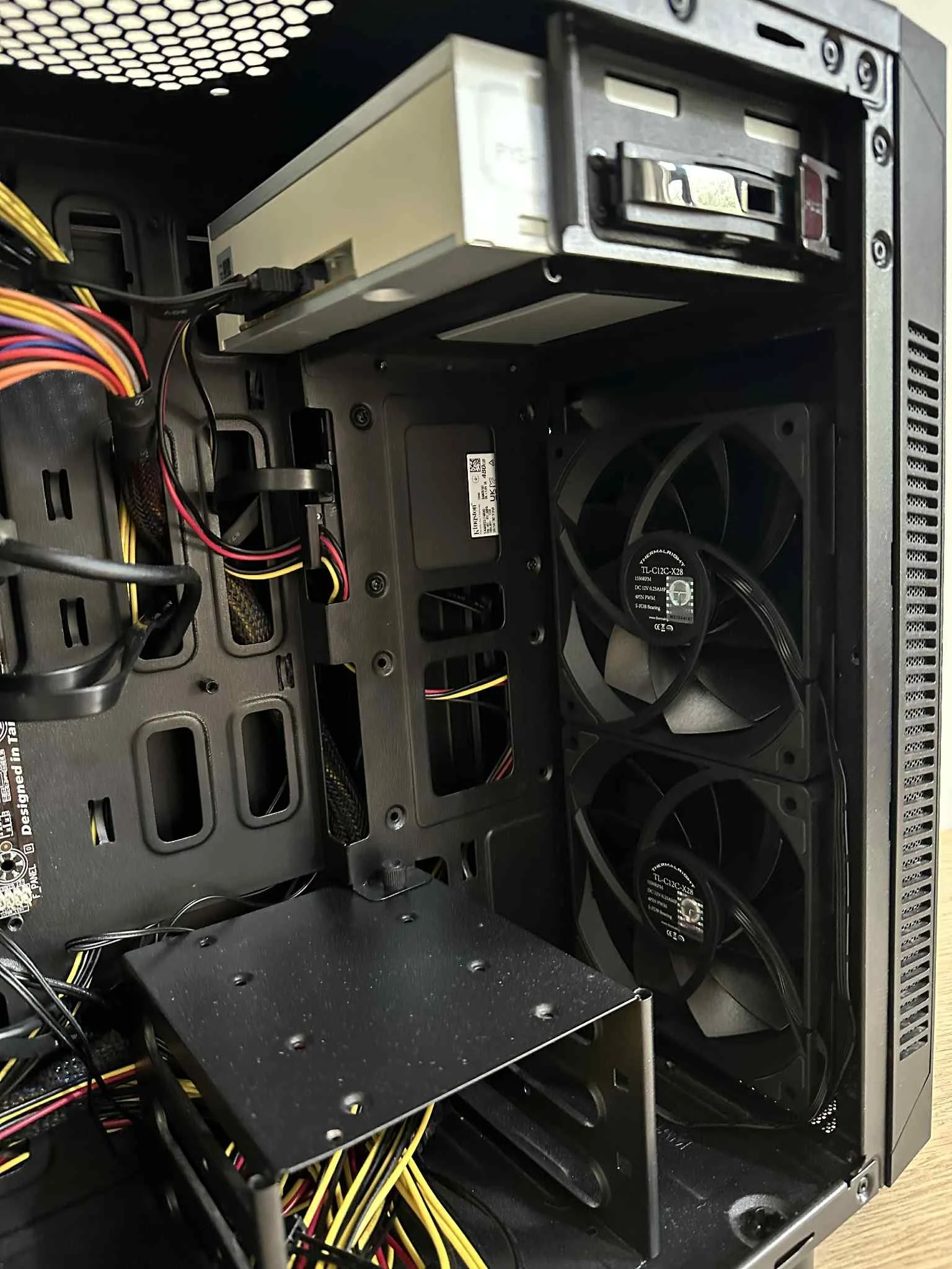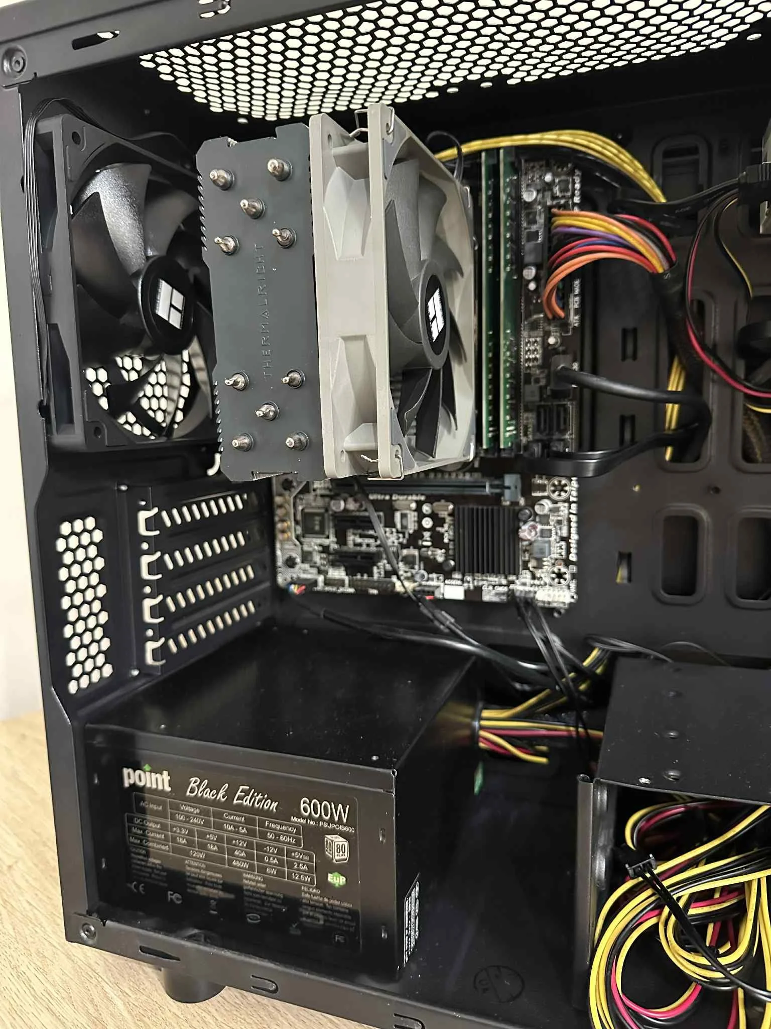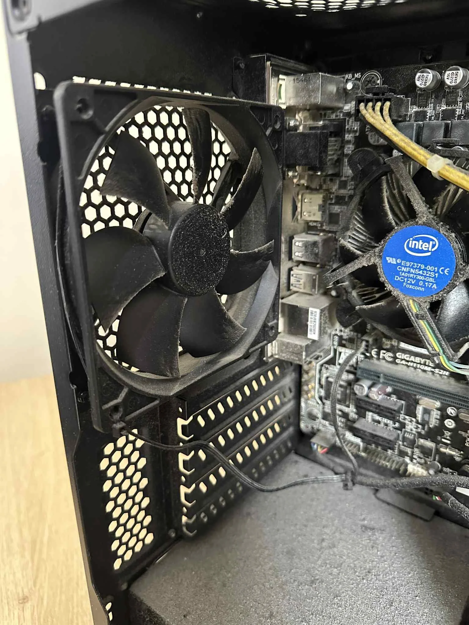We carefully removed all the components and dusted everything using compressed air and delicate brushes. It was then reassembled with a new CPU cooler and case fans, we added extra fans to the front of the case to help with airflow.